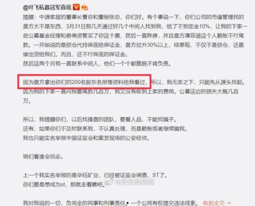 总的来说,叶飞爆料的名单大全视频虽然引发了争议,但也让我们看到了金融圈的神秘面纱。在这个信息爆炸的时代,我们需要保持警惕,理性看待各种消息。同时,也希望监管部门能够继续加强监管,让金融市场更加健康、稳定。